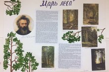 К юбилею выдающегося художника И.И. Шишкина преп. Чадаева С.Ю. вместе с ребятами выпустили стенгазету "Царь леса". Шишкин - художник народный. Всю жизнь он путешествовал по России, воспевая величественную красоту ее природы в своих картинах, которые сегодня известны каждому.