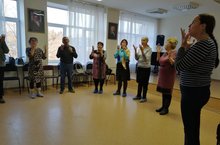 Народный хор на факультете Культуры и эстетики Вот уже более двух месяцев занимаются слушатели Университета третьего возраста факультета Культуры и эстетики, который базируется в АМК им. Ф.З.Яруллина. Увлекательные занятия проводит преподаватель народного пения Елена Нестерова. Уроки пения включают элементы дыхательной гимнастики, упражнения на артикуляцию, раскрепощение, постановку певческого аппарата. Интересные скороговорки из области актерского мастерства, разучивание репертуара – все это привлекает новых желающих заниматься в Народном хоре.