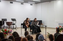 В программе также выступили студент 2 курса специальности "Оркестровые духовые и ударные инструменты" Насыров Данил, студент 3 курса специальности "Инструменты народного оркестра" Галяутдинов Мансур, а также преподаватель Диляры- Светлана Викторовна Садовская.