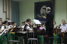4 мая в СОШ №4 состоялся музыкальный спектакль в рамках проекта «Венок дружбы», представленный выпускницей отделения НХТ Р. Александровой. На сцене «царствовали» музы поэзии, драмы. музыки и т.д. Музыкальное сопровождение студентов оркестрового отделения не оставило никого равнодушным, так как представлены были инструменты медной группы и ударных инструментов.