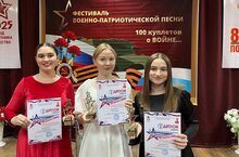 Студенты специальности "Эстрадное пение" Ильина Ангелина -1 курс, Бурдина Нилина -3 курс, Мияссарова Минсылу- 4 курс (руководитель Шайхулисламова А. Г.) приняли участие в фестивале военно-патриотической песни "100 куплетов о войне" и стали Лауреатами фестиваля. Наши искренние поздравления!