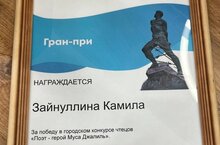 Камила Зайнуллина, студентка 3 курса специальности "НХТ.Театральное творчество", стала победительницей городского конкурса чтецов "Поэт-герой Муса Джалиль"!