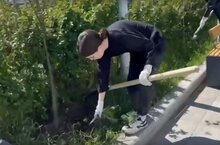 Работы по формированию приствольных кругов деревьев, высаженных на территориях ул. Ленина 22.05.2024