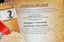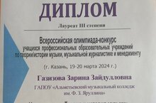 Газизова Зарина - Лауреат 3 степени по теории/истории музыки.