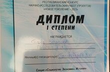 Студентка колледжа Гусева Вероника (гр.11 ССП) награждена Дипломом I степени за участие Республиканском конкурсе научно-исследовательских работ «НОВОЕ ПОКОЛЕНИЕ – 2023»