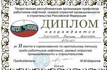25 марта 2016 г в шахматном клубе проводился турнир по шахматам среди работников Татарстанской республиканской организации Профсоюза нефтяной, газовой отраслей промышленности и строительства Российской Федерации.