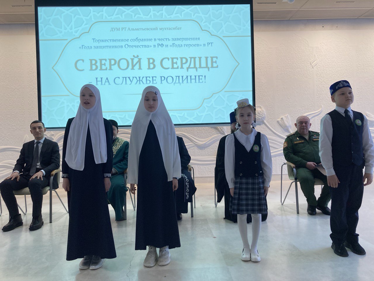 25 декабря в Центральной мечети прошло торжественное собрание в честь завершения "Года защитников Отечества" в РФ и "Года Героев" в РТ.Ученики 4 класса приняли участие в этом мероприятии и удивили чтением стихотворений.