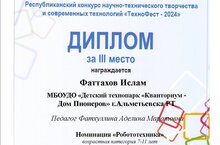Республиканский конкурс научно-технического творчества и современных технологий «ТехноФест-2024», г. Нижнекамск 12.12.2024