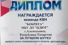 Поздравляем с победой команду КВН «Бобрята» Центра детско-юношеского творчества Баянова Наиля, Баянову Дарью, Гизатуллина Тимура и Чебулаеву Викторию (педагог дополнительного образования Боброва Оксана Викторовна).