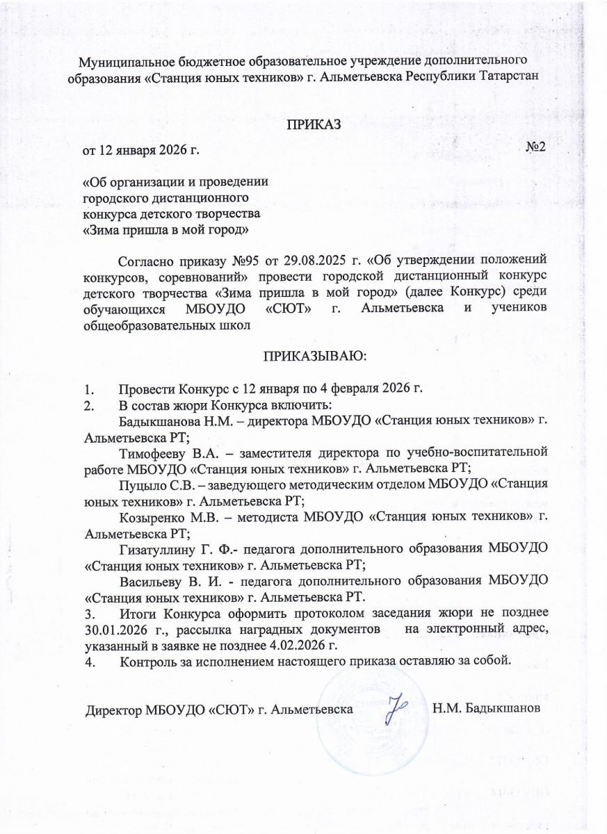 Приказ об организации и проведении конкурса Зима пришла в мой город
