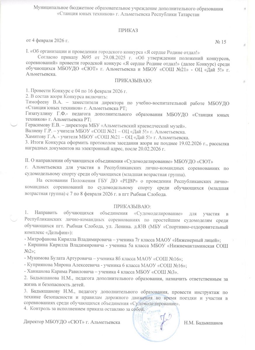 Приказ об организации и проведении открытых соревнований по судомодельному спорту