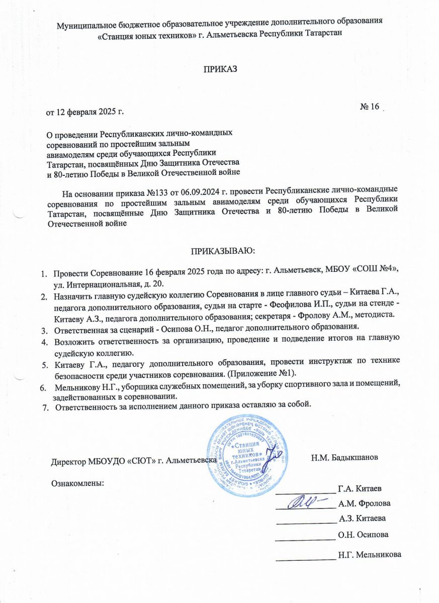 Приказ о проведении Республиканских лично-командных соревнований по простейшим зальным авиамоделям среди обучающихся Республики Татарстан