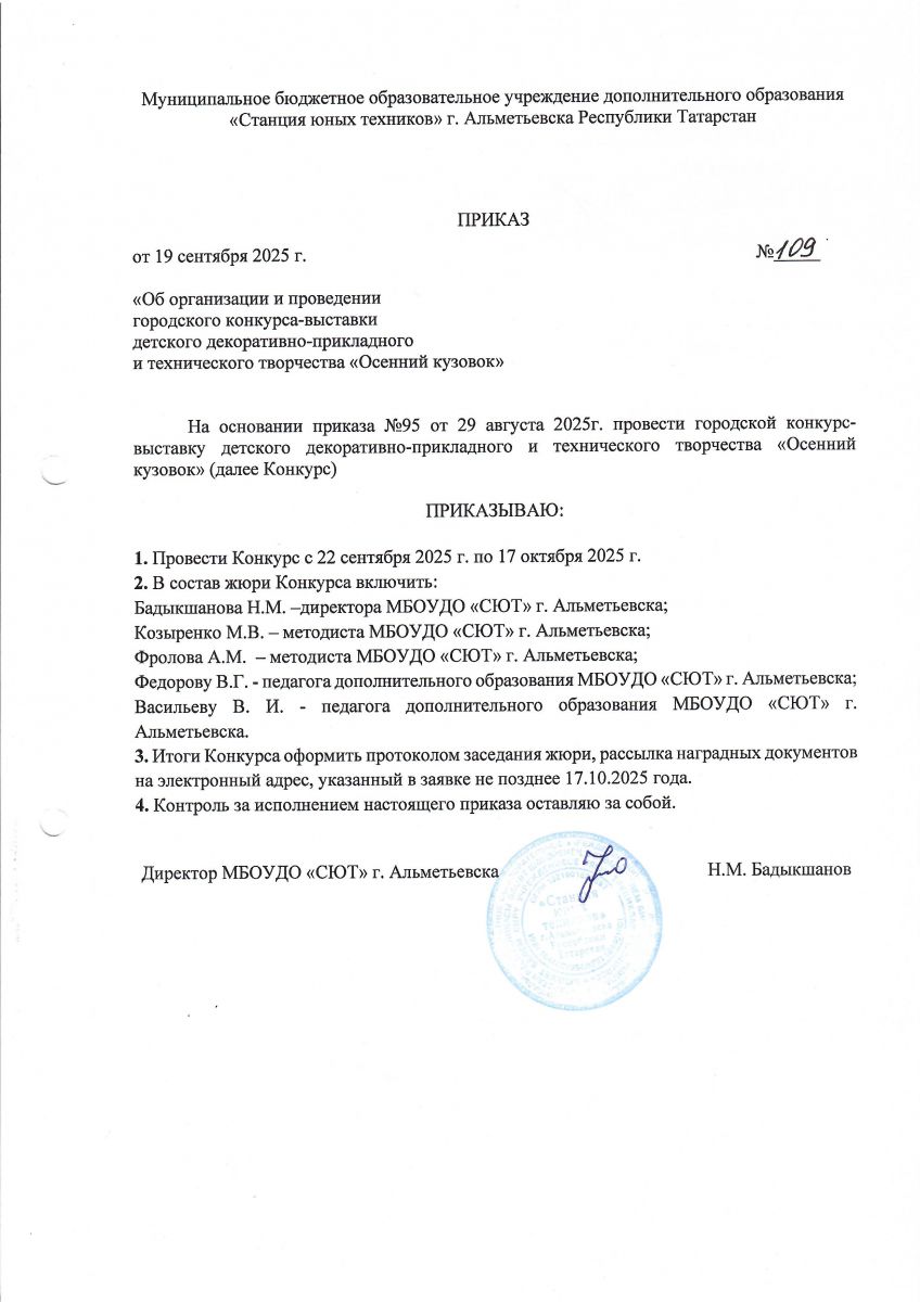 Приказ о проведении городского конкурса "Осенний кузовок"