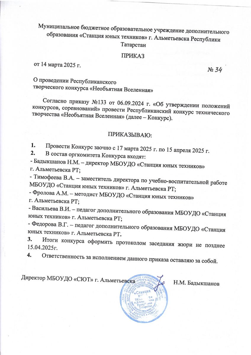 Приказ о проведении республиканского творческого конкурса "Необъятная Вселенная"
