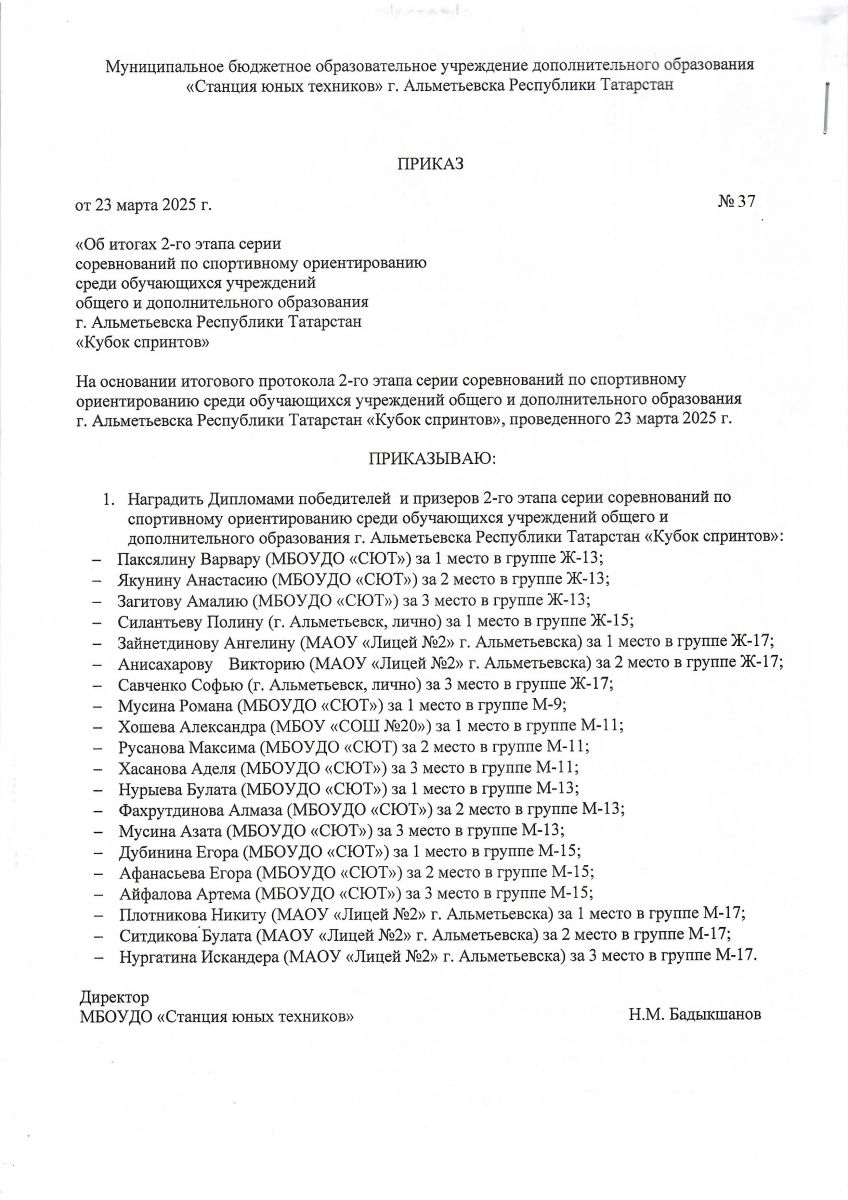 Приказ об итогах 2-го этапа серии соревнований "Кубок спринтов"