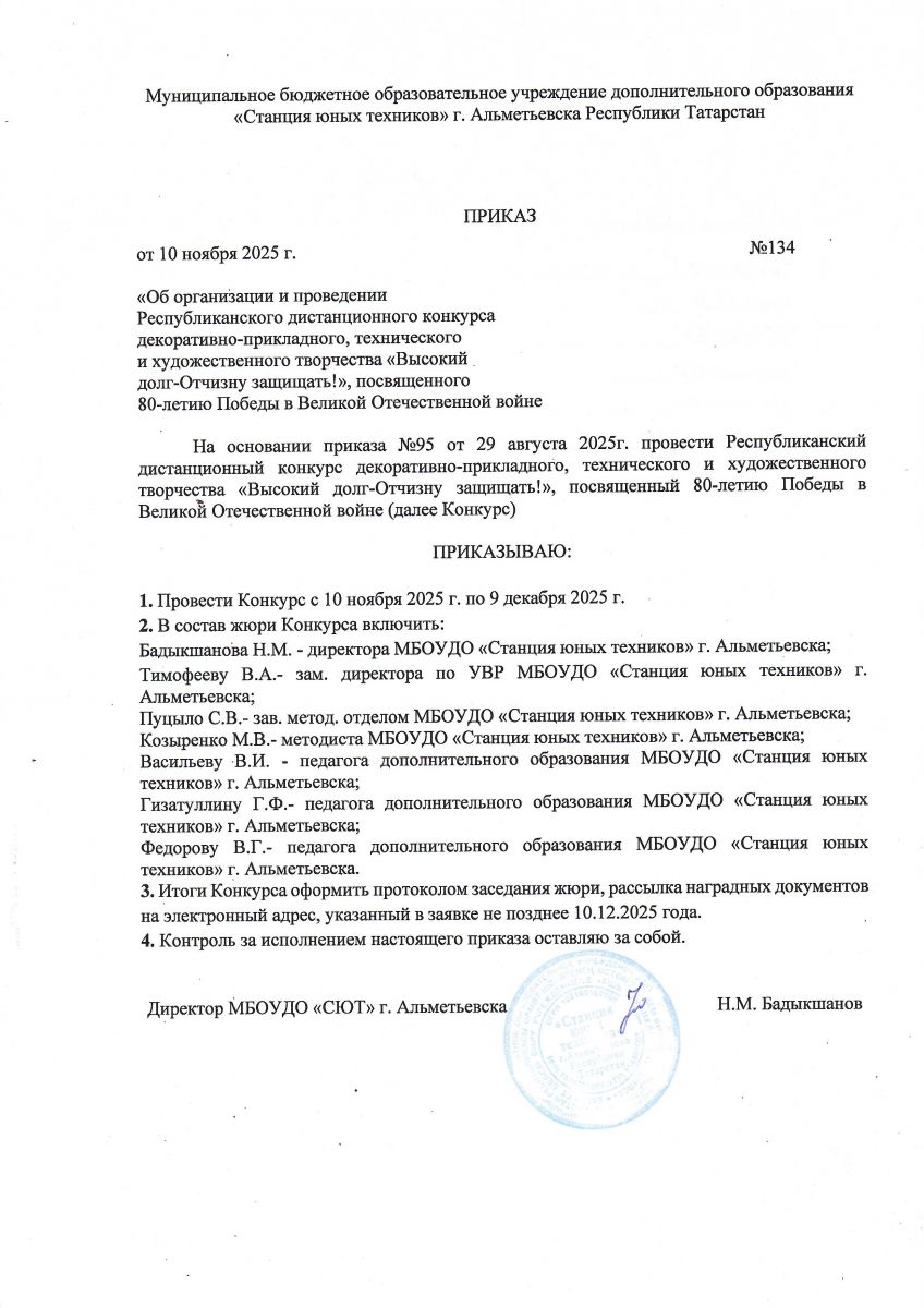 Приказ о проведении городской конференции исследовательских работ и конкурсе детского творчества "Память в сердцах храним", посвященном 78 годовщине Победы в Великой Отечественной войне и 80-летию Сталинградской битвы и битвы на Курской дуге