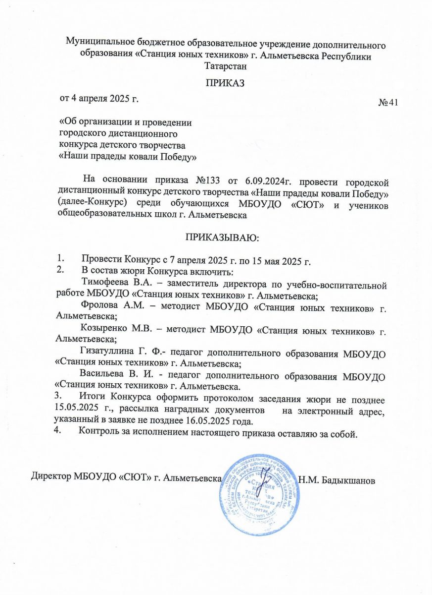 Приказ о проведении городского дистанционного конкурса Наши прадеды ковали Победу