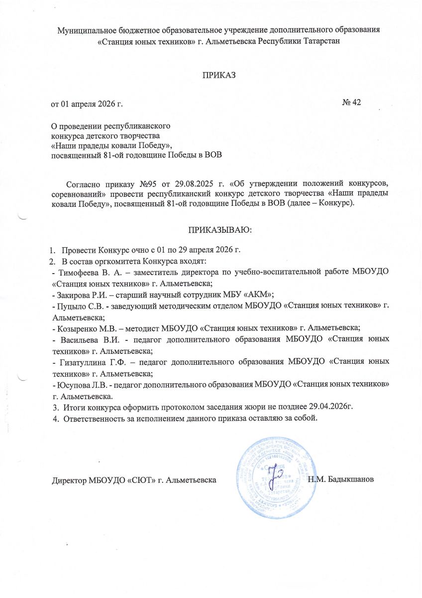 Приказ об организации и проведении республиканского конкурса "Наши прадеды ковали Победу!"