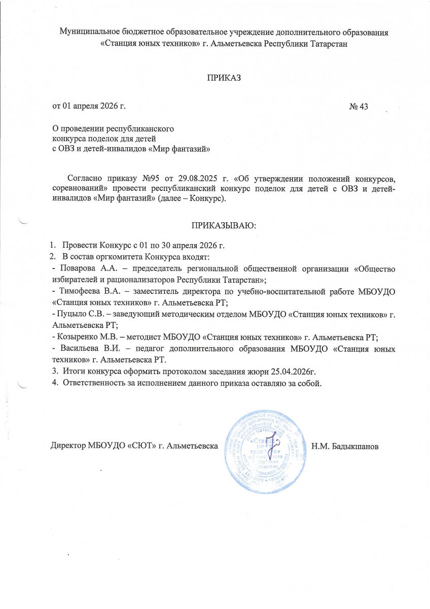 Муниципальное бюджетное образовательное учреждение дополнительного образования «Станция юных техников» г. Альметьевска Республики Татарстан /Татарстан Республикасы Әлмәт шәһәренең өстәмә белем бирүче муниципаль бюджет белем бирү учреждениесе «Яшь техниклар станциясе»/