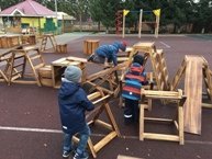 Новая и полюбившаяся детьми форма игровой деятельности - практикум на воздухе с использованием ростового конструктора. В этом процессе ребятам предоставляется свобода в выборе времени, пространства, партнеров, действий и сюжета игры. Интересно наблюдать как изо дня в день игра приобретает сюжетную основу и собирает ребят вместе. Рефлексия после каждого практикума, зарисовывание элементов игры даёт посыл на продолжение, у детей возникает желание эту игру доиграть на следующей прогулке и внести в неё что-то новое.