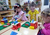Юные архитекторы II младшей группы продолжают учиться строить классические домики для Матрешек. Мы не просто учимся, а обыгрываем каждый элемент строительного набора. Для высокой Матрешки стеночки (кирпичики) ставим на брусочки, а завалинки (укрепления), чтоб Матрёшка отдыхала, строим из кубиков или кирпичиков. Окошки в домике ребята научились строить из арок, брусков и кирпичиков, а крышу делаем из треугольной призмы. Замечательные наборы настольного строителя позволяют детям конструировать очень яркие и красивые постройки, развивать внимание, творчество, мышление, креативность, взаимовырочку.