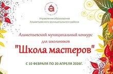 Управление образования Альметьевского муниципального района объявляет о проведении муниципального конкурса "Школа мастеров", который пройдет с 10 февраля по 20 апреля 2026 года. Этот конкурс направлен на популяризацию народного творчества, развитие эстетического вкуса у детей и воспитание уважения к истории и традициям нашей Родины.