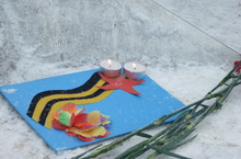 Очистили снег с мемориала, поставили, сделанную своими руками, свечу памяти.