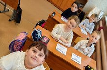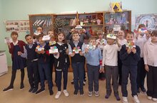 ребятам предлагалось найти изображение герба России в локации школы и сделать с ним фото