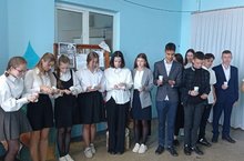 Так же в нашей школе прошла акция "Капля жизни" в память жертв Беслана, которые все три дня, находясь в заточении, не могли выпить и капли воды, участникам акции было предложено напоить всех тех, кого уже с нами нет. Участники акции набрали в ладони немного воды и с пожеланием светлой памяти всем безвинно погибшим напоили цветы. -