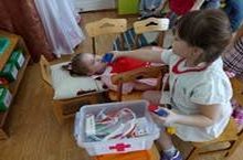В подготовительной к школе группе прием больных осуществлял "квалифицированный специалист". В ходе игры было выявлено, что "больным" срочно нужна кушетка!