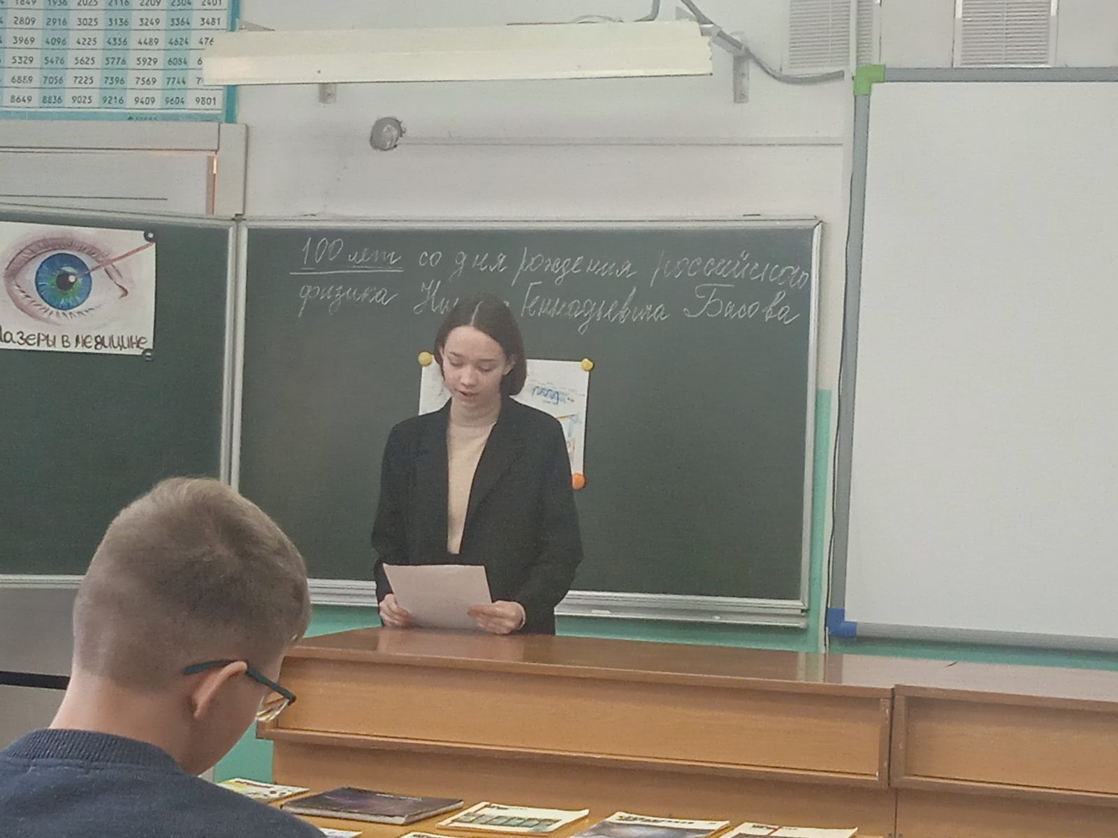 14 декабря 2022 г. учителем физики Абдрахимовой М.М. было проведено мероприятие, посвященное 100-летию со дня рождения российского физика Николая Геннадьевича Басова
