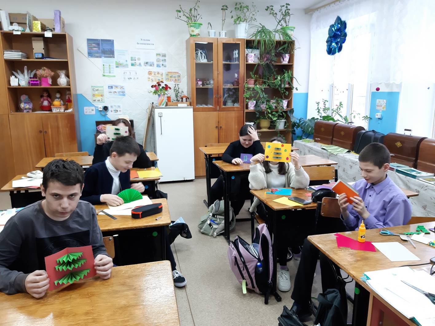 2 января в 7 классе был проведен мастер-класс "Новогодняя открытка"