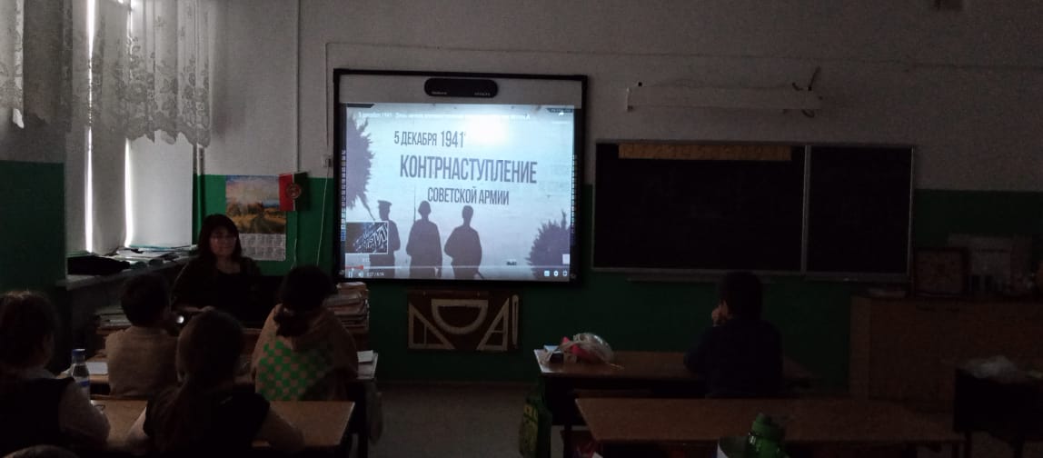 В рамках реализации плана подготовки и проведения мероприятий, посвященных 77 годовщине Победы в Великой Отечественной войне 6 декабря в 1-10 классах был проведен единый классный час "Контрнаступление советских войск под Москвой"
