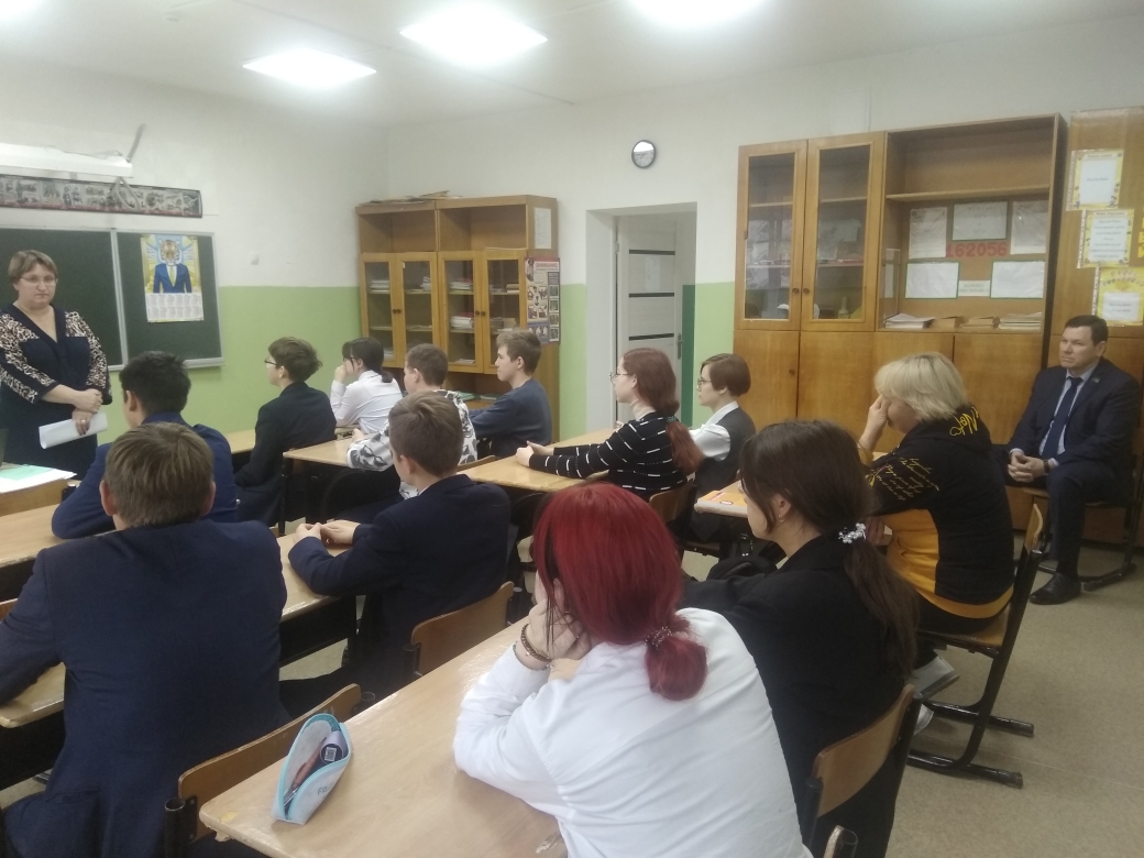 11 октября 2022 г. в школе был проведен Единый урок по правовому просвещению "Мы в ответе за свои поступки". На урок был приглашен депутат Зимин Андрей Александрович