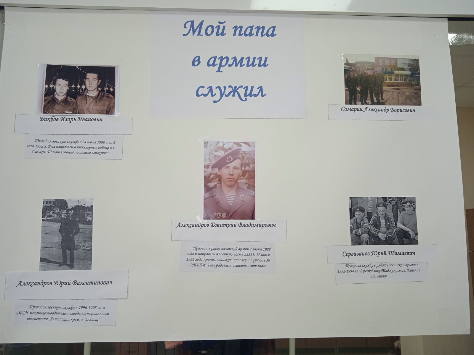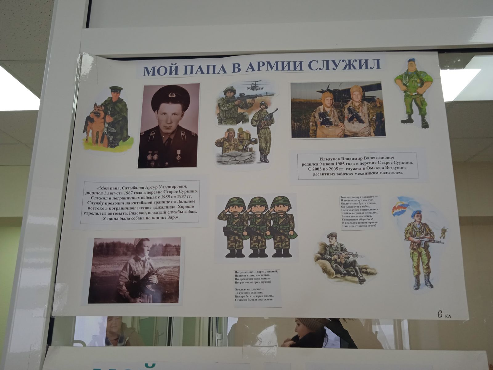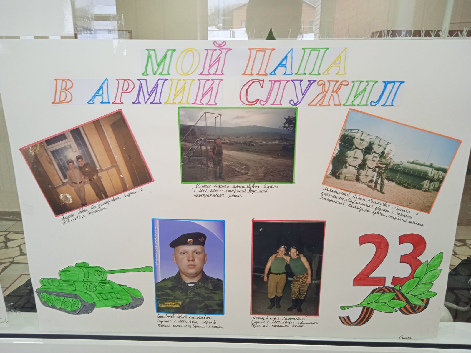 21 февраля 2022 г. в рамках гражданско-патриотического месячника и плана проведения мероприятий, посвященных 77-ой годовщине Победы в Великой Отечественной войне в школе была организована выставка плакатов "Мой папа в армии служил". В выставке приняли участие все классы.