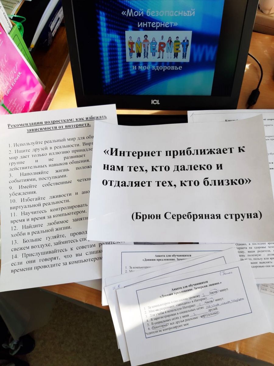 25 февраля 2022 г. в школе были проведены классные часы на тему "Интернет и моё здоровье"