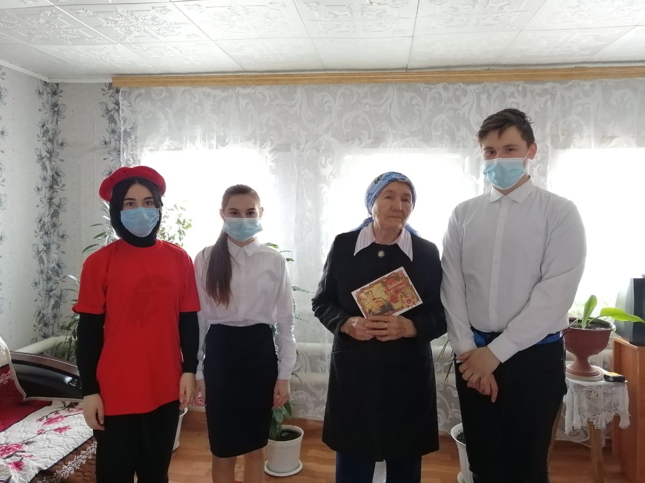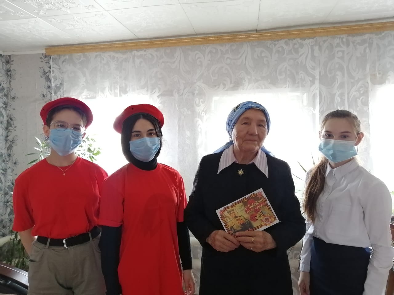 В рамках акции "У войны не женское лицо..." юнармейцы 9 класса и их одноклассники поздравили Паймендееву Нину Ивановну с 76-ой годовщиной Победы. Нина Ивановна родилась в 1937 году, росла в тяжёлые военные и послевоенные годы. Она рассказала о том, как люди жили в военное время, что ей больше всего запомнилось. «Благодарим Вас, Нина Ивановна, что уделили нам своё время!»