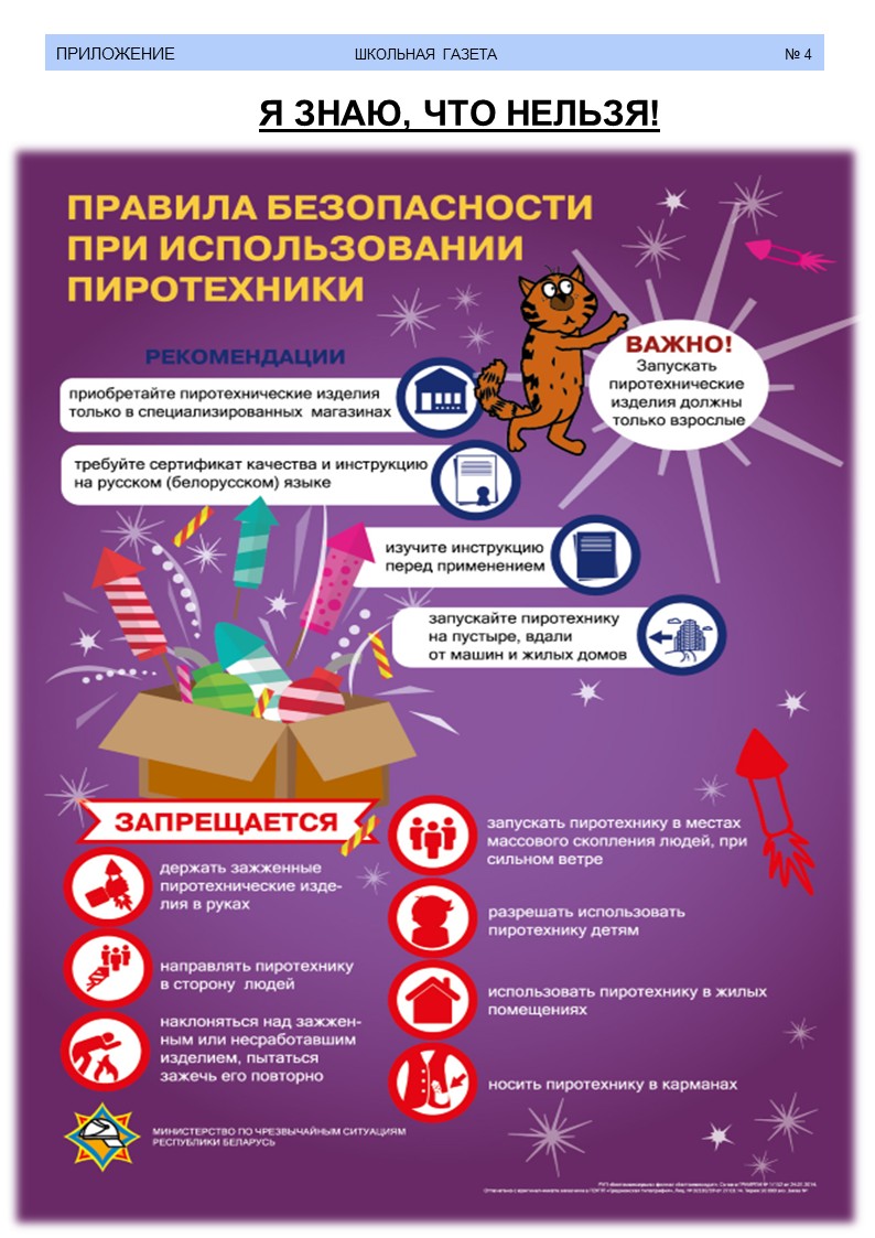 Приложение к газете № 4 "Правила безопасности при использовании пиротехники"