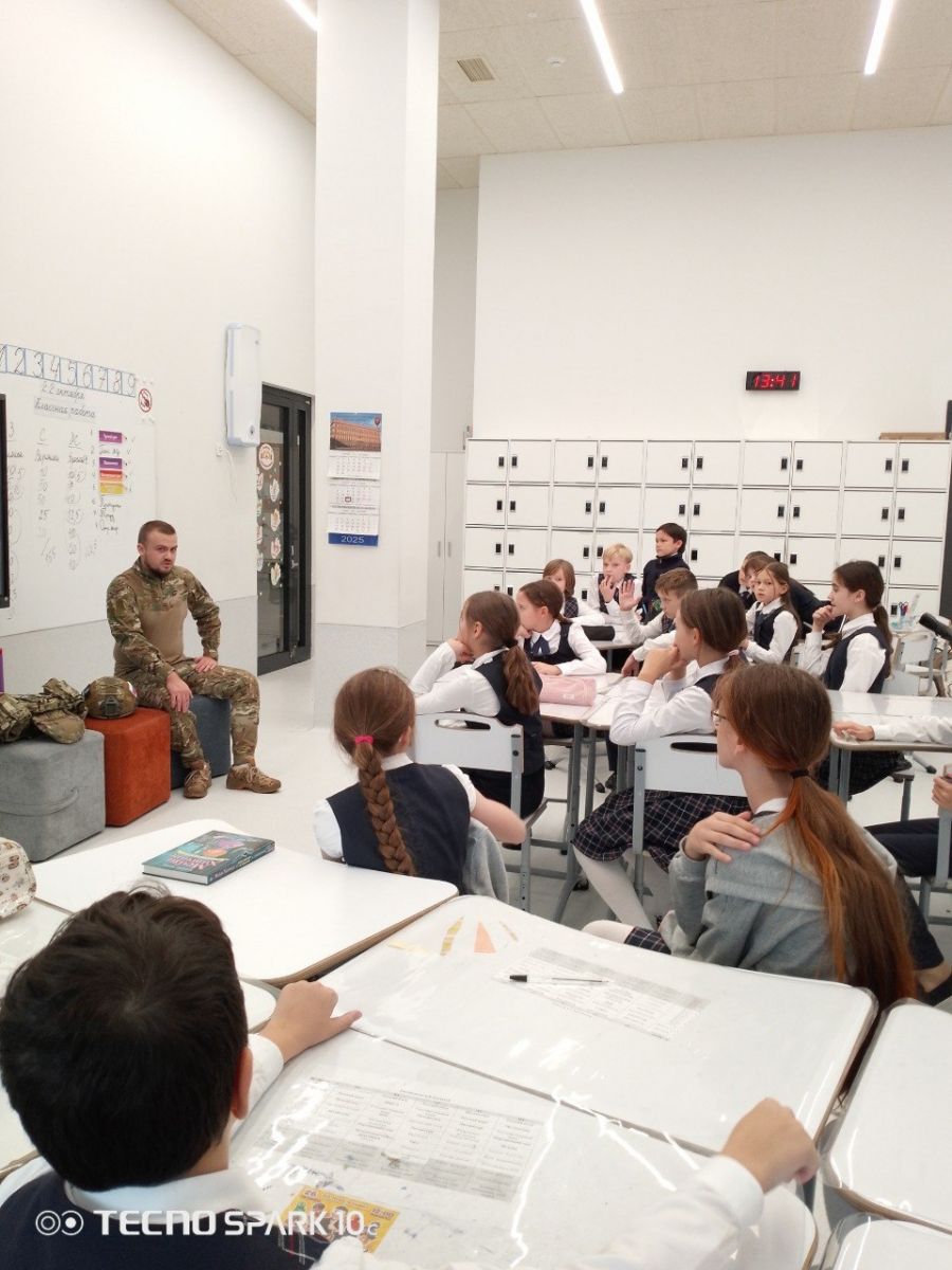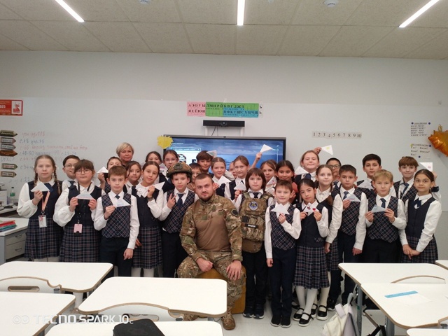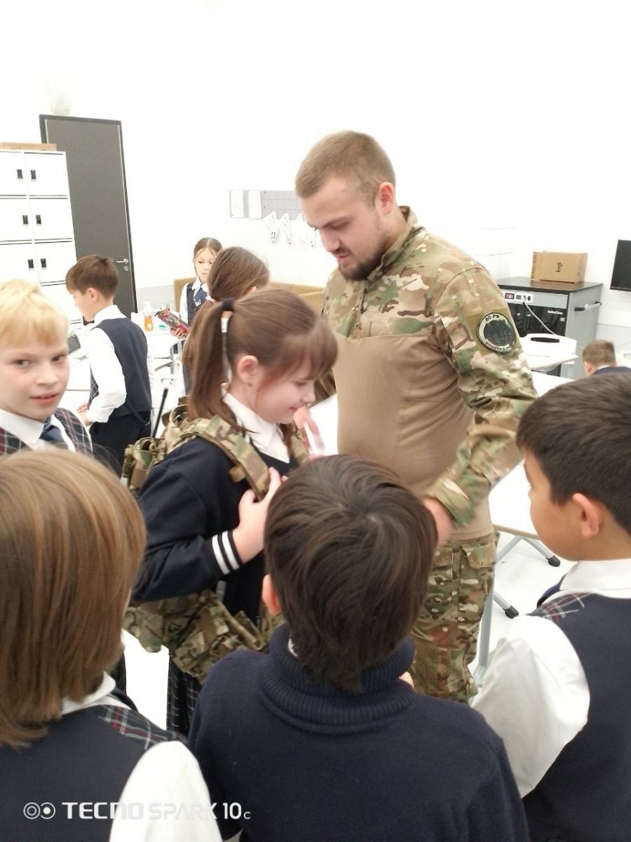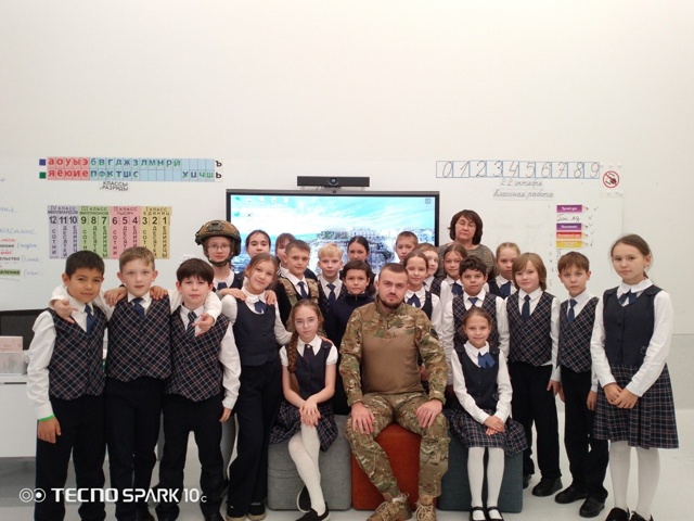 Встреча с героем 22.10.25 г. в ГАОУ «Лицей №1 им. М.К. Тагирова» состоялась встреча среди 4-х классов с участником специальной военной операции Шигаповым Ильсуром, выпускником Лицея №1. Ильсур поделился трогательной историей о ценностях дружбы среди солдат, рассказывая, как товарищи поддерживают друг друга даже ценой собственной жизнью и здоровья. Ребята активно участвовали в диалоге, задавали вопросы, интересовались подробностями службы. А после беседы, каждый смог почувствовать себя настоящим защитником Родины, примерив боевое снаряжение Ильсура. Глаза детей горели от восторга! Завершилась встреча искренними пожеланиями крепкого здоровья и благополучия нашему герою. Также ребята передали личные письма другим участникам СВО через Ильсура. Ведь каждому солдату очень важно чувствовать поддержку и заботу тех, кто ждет дома. С нетерпением ждем вашего скорейшего возвращения! Пусть каждый из вас вернется с новыми силами, вдохновением и яркими впечатлениями. Мы гордимся всеми участниками СВО!