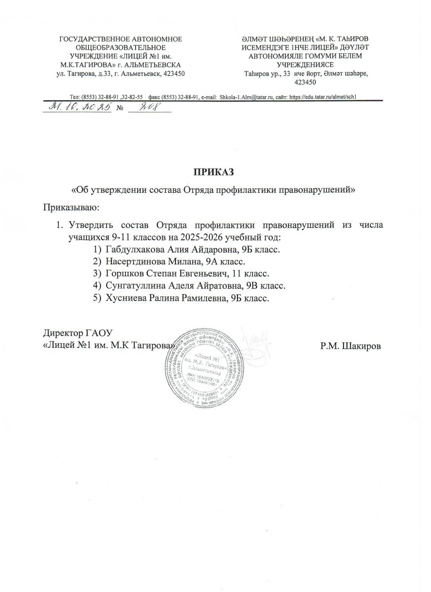 | E-Mail: | Shkola-1.Alm@tatar.ru; Licey-1.Tagirova.alm@tatar.ru |