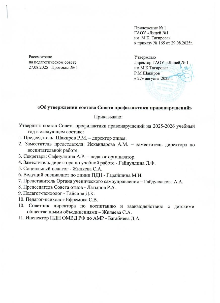 Приказ об утверждении состава совета профилактики правонарушений