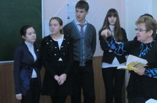 УЧИТЕЛЯ ТАТАРСКОГО ЯЗЫКА Мустафина Р.Х. и Ганеева Г.М. провели внеклассное мероприятие посвящённое к творчеству и памяти великого поэта и героя Советского союза М.Джалилю в школьной библиотеке совместно с городской библиотекой №3 г.Альметьевска. Мероприятие проводилось 21 февраля 2013 года с учащимися 10 классов.