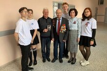 Встреча с ним была очень сердечной и теплой. Гости любезно согласились запечатлеть момент встречи с директором школы и волонтерами Победы. -