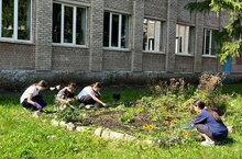 Некоторые ученики занимаются работой на клумбах, высаживая и ухаживая за растениями, чтобы наша школа радовала глаз красотой.