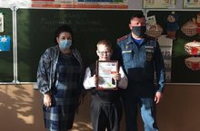 13 ноября торжественно наградили дипломом и подарком ученика 4б класса Попова Глеба за победу во всероссийском конкурсе рисунков "Пожарная безопасность"