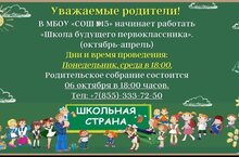 Уважаемые родители! В МБОУ "СОШ15" начинает работать "Школа будущего первоклассника".Родительское собрание состоится 6 октября в 18:00. 03.10.2025