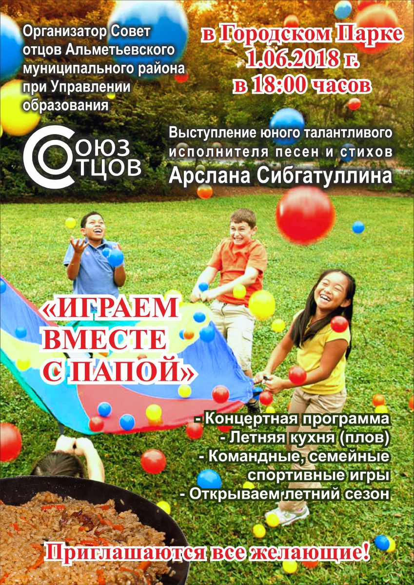 1 июня в Городском парке в 18:00 "Играем вместе с папой"