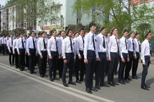 49 юношей нашей школы с 7-11 класс приняли участие в городском параде.