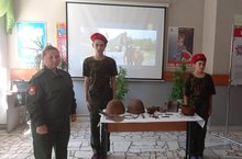 Член поискового отряда, учитель ОБЖ нашей школы, провёл беседу - ознакомление ребят из пришкольного лагеря с экспонатами времён ВОВ.