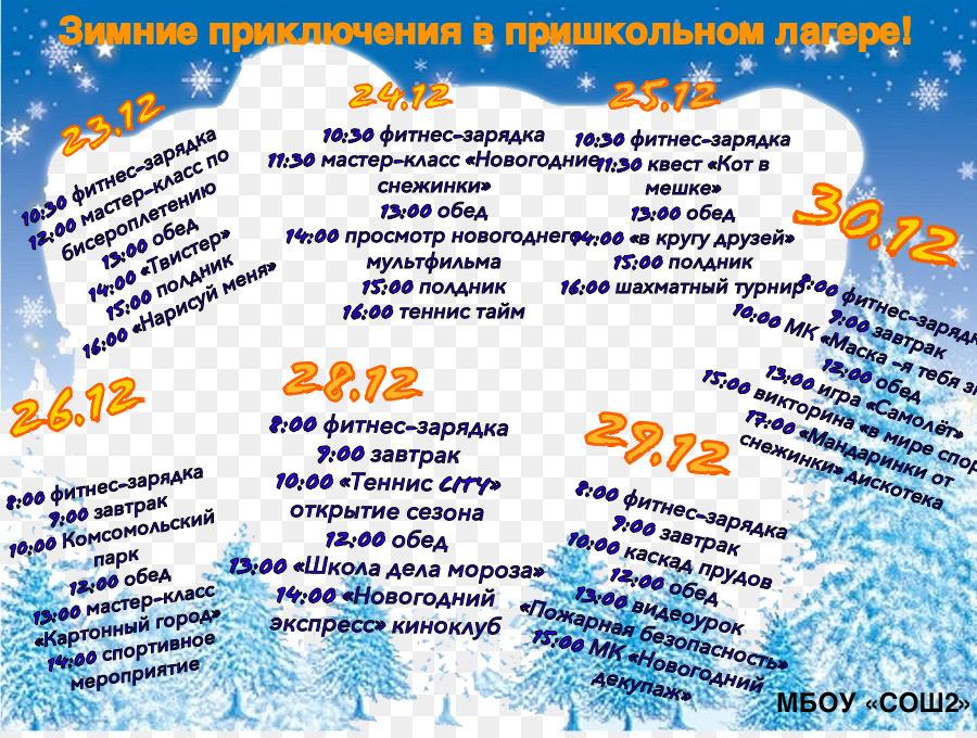 Сегодня состоялось открытие зимнего пришкольного лагеря. С планом мероприятий можно ознакомиться по ссылке